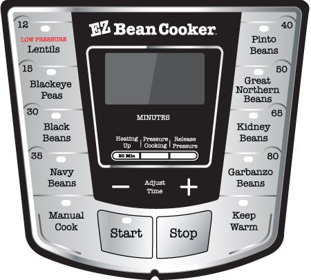 The EZ Bean Cooker is the first product on the market designed specifically to cook beans with preset variety buttons and absolutely no soaking required! Our digital control panel includes preset variety buttons for your favorite beans.
